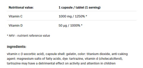 Витамин С спомага за поддържането на здрава имунна система, което е особено важно в случай на продължително натоварване на организма, причинено от тренировки или физическа работа. Освен това в периоди на неблагоприятни климатични условия, когато организмът ни е по-уязвим към атаките на всякакви вируси и бактерии - витамин С се оказва изключително полезен.