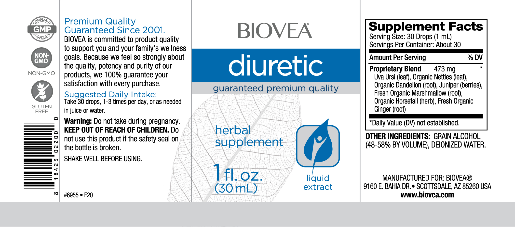 Diuretic Liquid Drops от BIOVEA® използват чисти, мощни билки, които подпомагат функциите на отделителната система, като същевременно действат като естествен диуретик. Билковият диуретик може да спомогне за намаляване на задържането на вода със своята комбинация от билки, които подпомагат здравословните функции на тъканите и пикочните пътища.