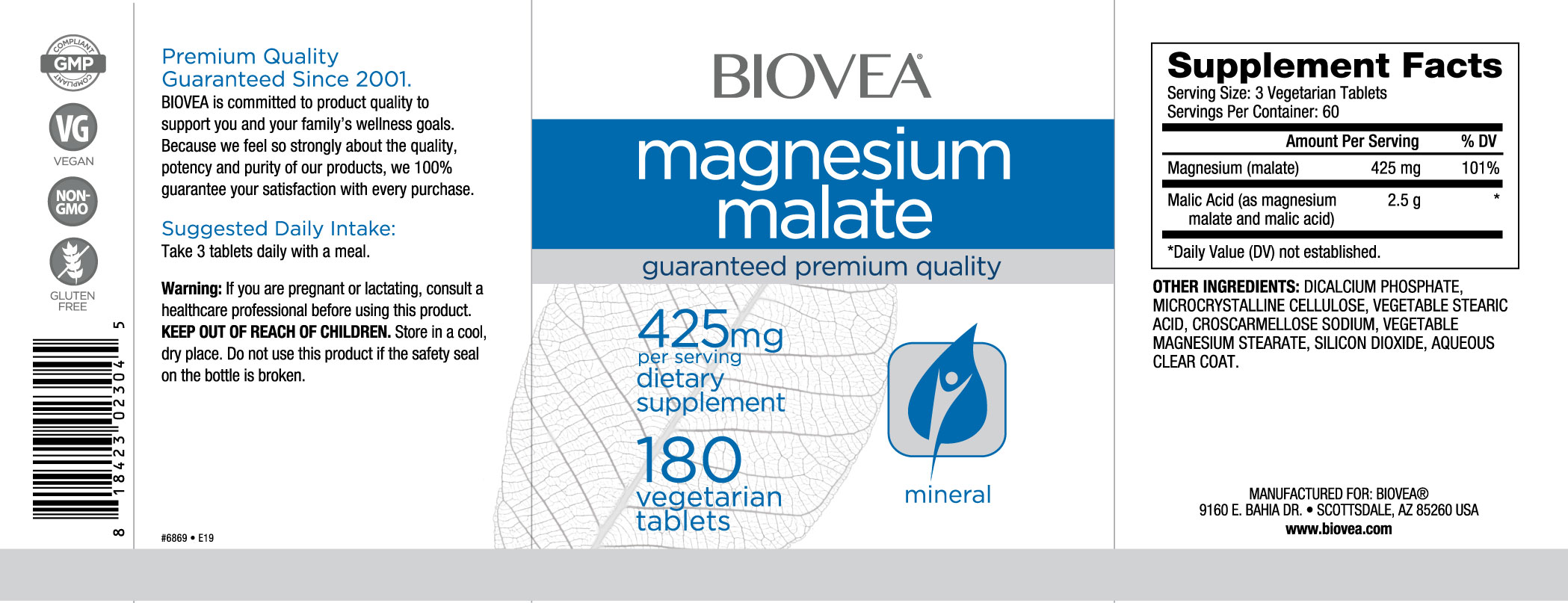 BIOVEA Magnesium Malate 425 mg 180 Tabs