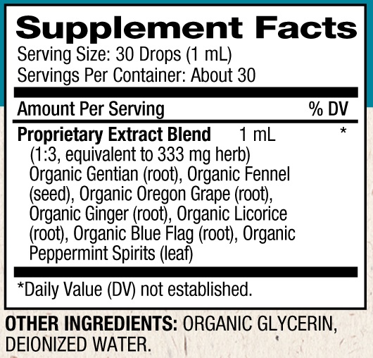 Течните капки за грижа за храносмилането на BareOrganics съчетават няколко органични съставки, за които се смята, че подпомагат цялостното здраве на храносмилателната система. Течните капки за грижа за храносмилането BareOrganics Digestive Care Liquid Drops са направени с мощни и органични съставки, включително копър, джинджифил, еньовче, орегонско грозде, женско биле, синьо знаме и ментов спирт за оптимална подкрепа на здравето. Тези течни капки се предлагат в компактен флакон и не е необходимо да се съхраняват в хладилник, което ги прави идеални за хора с активен начин на живот, които са в движение.