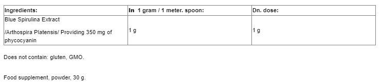 Съставки: Екстракт от синя спирулина