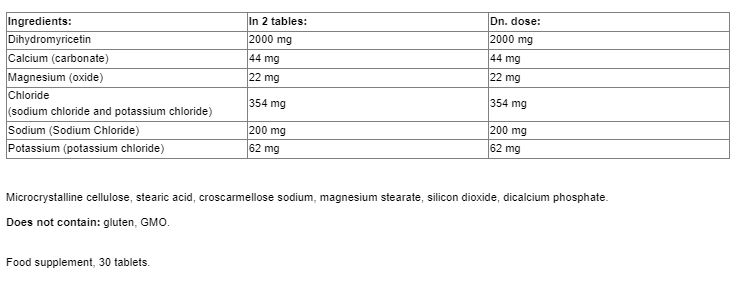 Съставки: Дихидромирицетин, калций, магнезий, хлорид, натрий, калий