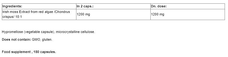 DOUBLE WOOD Irish Sea Moss / 180 Caps е изключително богат на множество полезни хранителни вещества и има благоприятен ефект върху здравето на цялото тяло.