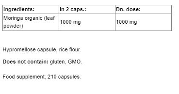 Съставки: Моринга