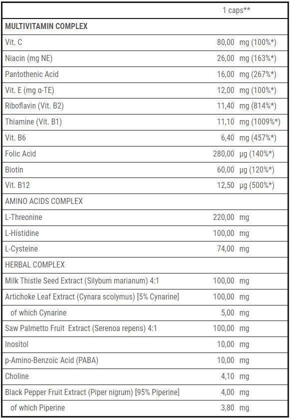 Silybum Marianum и артишок, които подпомагат функцията на черния дроб. Препоръчителната дневна доза е 1 капсула.