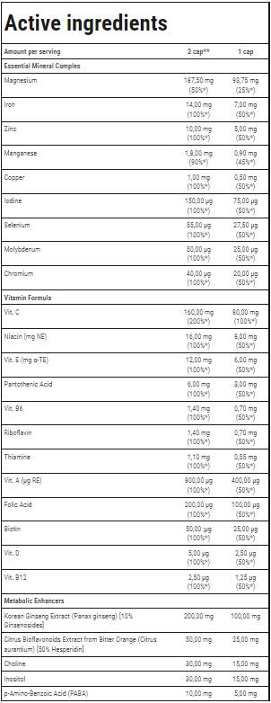 MULTIPACK 60 капсули помага за поддържане на оптимални нива на витамини и минерали в организма, необходими за нормалното му функциониране. Съдържа комплекс от витамини и минерали, необходими за поддържане на оптимални нива на важни вещества в организма. Може би се чудите: "Как мога да включа повече витамини и минерали в диетата си?" Когато става въпрос те да бъдат набавени изцяло чрез храна, проблемът тук е свързан на първо място с количествата, които трябва да бъдат консумирани за да си ги набавим, а след това и със затормозяването на организма ни, когато тя трябва да бъде преработена. Нашето решение на този въпрос е