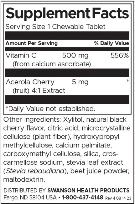 SWANSON Chewable Vitamin C - Natural Cherry Flavor Sugar-Free / 60 Chews