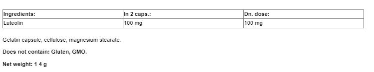 Съставки: лутеолин 100 мг. (в една доза), желатинова капсула, целулоза, магнезиев стеарат