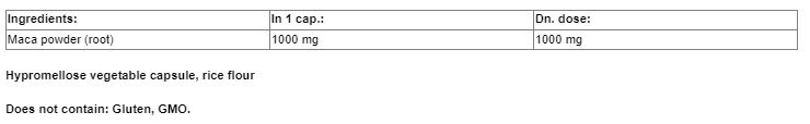 Съставки: мака на прах (корен), хипромелозна растителна капсула, оризово брашно