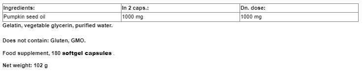 Съставки: масло от тиквени семена, желатин, растителен глицерин, пречистена вода