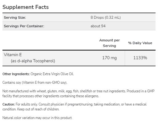 NOW Vitamin E-Oil е масло от витамин Е на растителна основа. Витамин Е е витамин, който се разтваря в мазнините. Той се съдържа в много храни, включително растителни масла, зърнени храни, месо, птици, яйца и плодове.