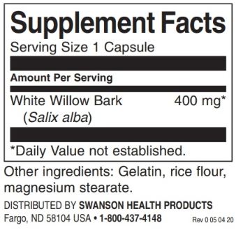 SWANSON Full Spectrum White Willow Bark 400 mg 90 Caps