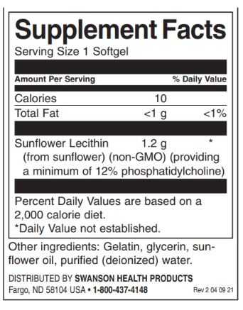 SWANSON Sunflower Lecithin from Non-Gmo Sunflower Seeds 1200 mg 90 Softgels