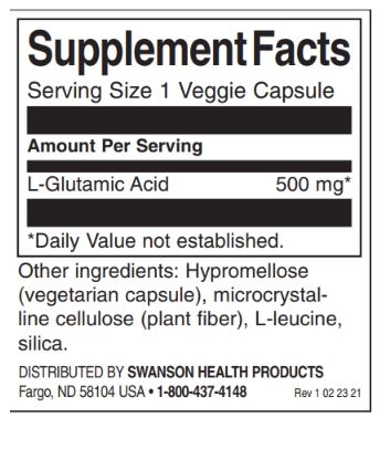 Swanson Glutamic Acid. Въпреки че се намира в тъканите на цялото тяло, глутаминовата киселина е най-известна като "храна за мозъка" благодарение на фундаменталната роля, която играе в ученето и паметта. Глутаминовата киселина може да се превръща при необходимост в глутамин - важна аминокиселина, която често може да бъде изчерпана по време на повишен стрес или интензивни физически упражнения. Нашите вегетариански капсули са икономичен източник на висококачествена глутаминова киселина за ума и тялото ви.