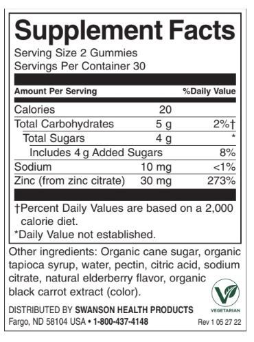 SWANSON Zinc Gummies - Elderberry Flavored 30 mg 60 Gummies