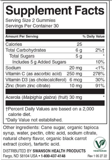 SWANSON Immune Boost Gummies with Acerola, Zinc and Vitamin C & D - Cherry 60 Gummies