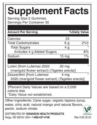 SWANSON Lutein & Zeaxanthin Gummies - Mango Flavored 60 Gummies
