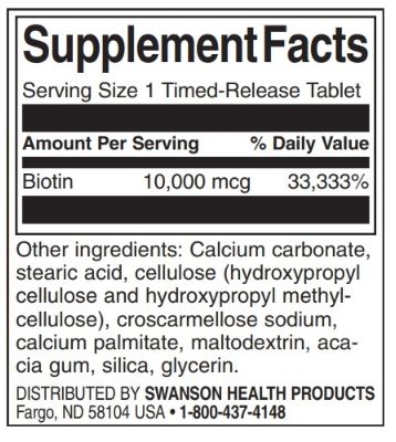 SWANSON Biotin - Timed-Release 10000 mcg 60 Tabs