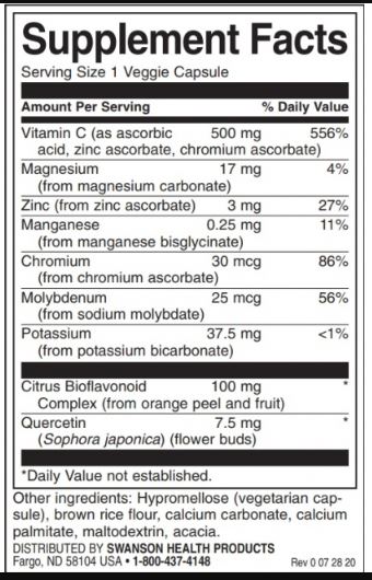 500 mg аскорбинова киселина на капсула от патентован буфериран комплекс, включващ цинков аскорбат и хромов аскорбат,