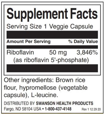 SWANSON R-5-P Riboflavin-5-Phosphate 50 mg 60 Vcaps