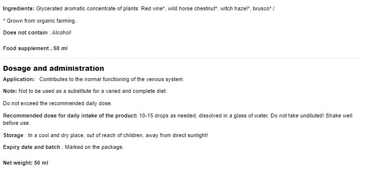 Полезните ѝ свойства се дължат на съдържащите се в нея див конски кестен, червена лоза, хамамелис и бруско. Всяко от растенията спомага за ускоряване на процеса на венозна циркулация и стимулира лимфната система.