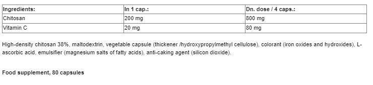 Съставки: Хитозан, Витамин C.