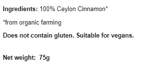 Начин на употреба: Прибавете цейлонска канела към ястие или напитка по избор. Не превишавайте препоръчителния дневен прием на канела, който е 6 гр.
