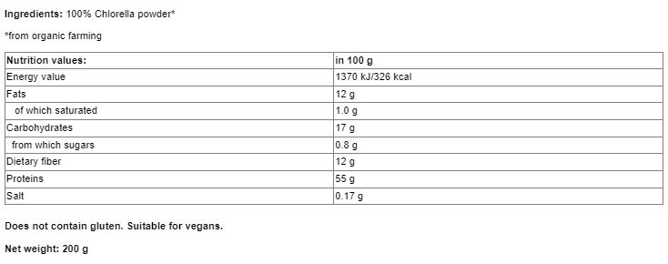 MYCONATUR Chlorella Bio Powder е висококачествена хранителна добавка, съдържаща 100% натурална хлорела на прах. В състава на този продукт ще откриете и много витамини и белтъци, а неговата формула е изцяло подходяща за вегани, вегетарианци и хора, които спазват различни хранителни режими.