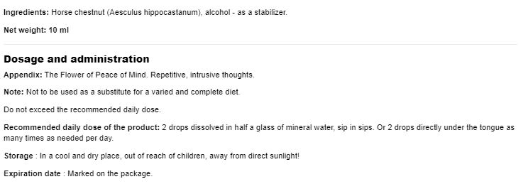 Artesania Agricola е специално формулиран с екстракт от бял кестен (White chestnut), растение, известно със своите успокояващи и лечебни свойства.