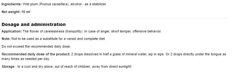 Plantis Cerasifera (Cherry Plum) Elixir Floral 6 е изцяло натурален продукт, който черпи своята сила от дивата слива (Prunus cerasifera). Дивата слива е растение, познато от векове заради своите лечебни свойства. Тя е богата на антиоксиданти, витамини и минерали, които подпомагат укрепването на имунната система и подобряват психическото здраве.