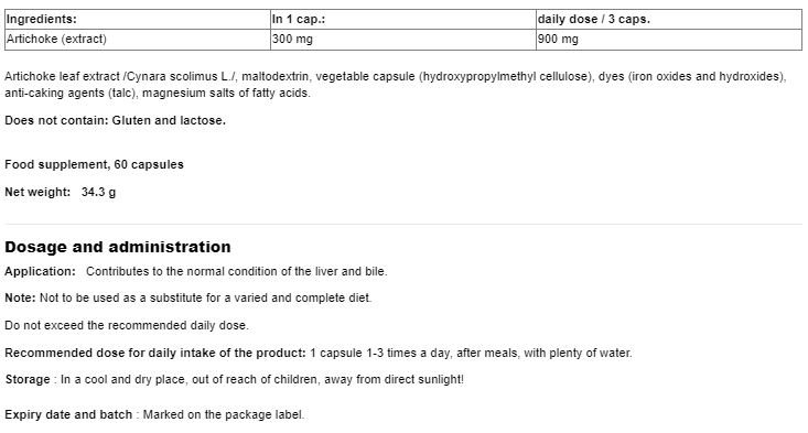 Съставки: Артишок