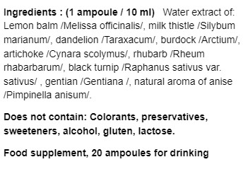 Съставки: екстракт от Артишок, екстракт от Рейши, Гутатион, екстркат от Бял Трън, Дезмодиум екстракт, Алфа липоева киселина.