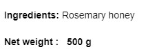 Rosemary Honey е пчелен мед, добит от цветовете на розмарина – растение, известно със своите ароматни и лечебни свойства. Медът от розмарин е лек, с фин и деликатен вкус, който е идеален за добавяне към чай, печива или просто да се наслаждавате на лъжица чиста сладост.