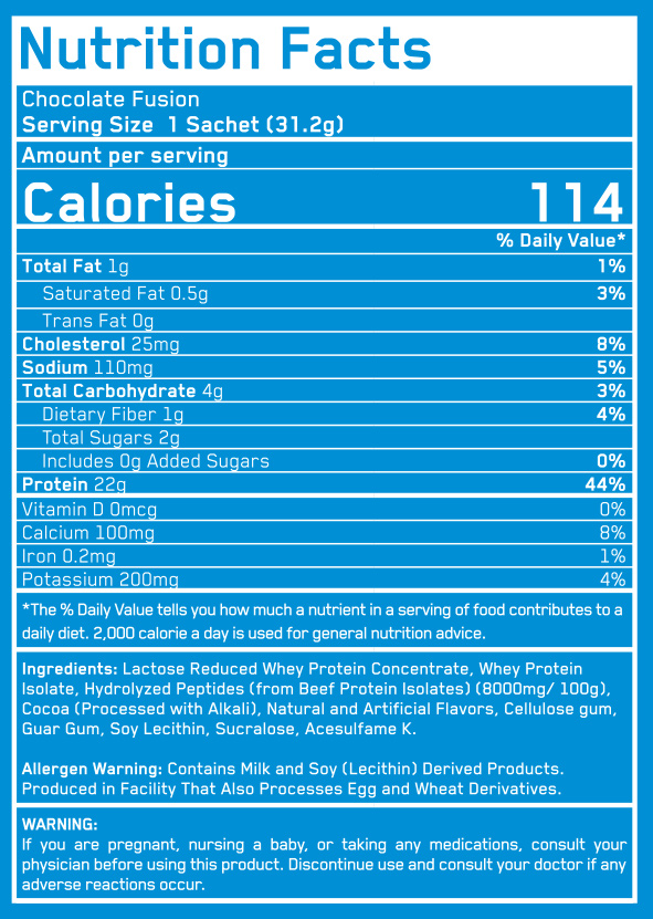 Съставки: суроватъчен протеин концентрат, хидролизирани пептиди, витамин А, витамин С, калций