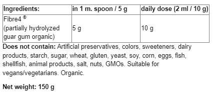 Разработен специално за хора с IBS, Fibre4 предлага удобен начин за увеличаване на дневния прием на фибри - без риск от храносмилателен дискомфорт. Изцяло натурален и немодифициран, Fibre4 се произвежда от гуар - източник на разтворими фибри на основата на галактоманан, които са с ниско съдържание на FODMAP.