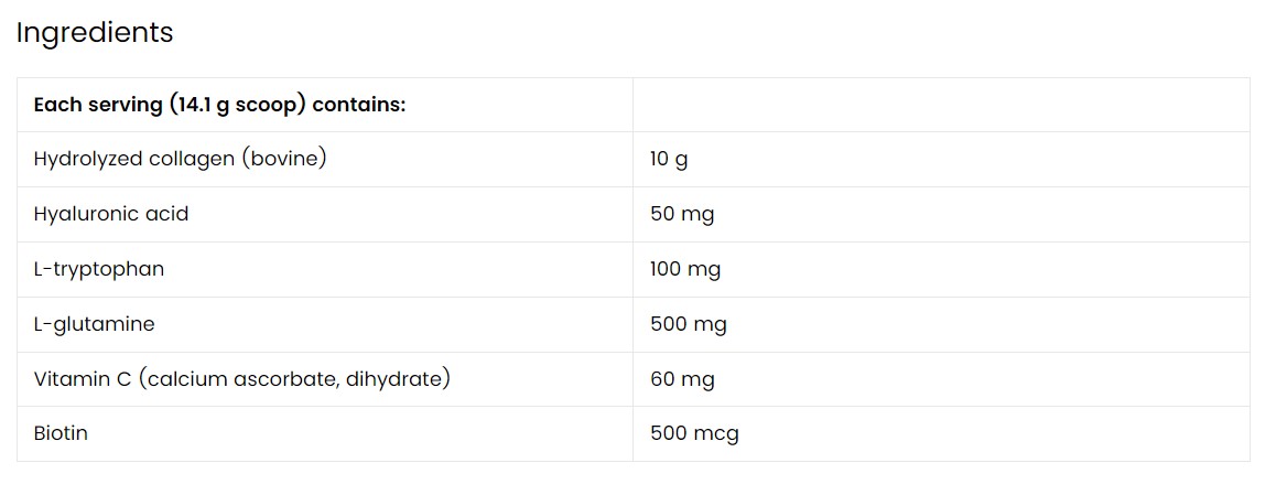 Всяка мерителна лъжичка Total Body Collagen на прах съдържа Verisol® Биоактивни колагенови пептиди, клинично подкрепена форма на хидролизиран колаген. Тази формула се отличава с пълен аминокиселинен профил, включително L-триптофан, който помага на тялото ви да оптимизира усвояването и да увеличи производството на колаген, намалявайки бръчките и фините линии и подобрявайки еластичността на кожата. Произведен от пасищно отглеждани, хранени с трева, без хормони и антибиотици говеда, Total Body Collagen е чист и сертифициран без замърсители.