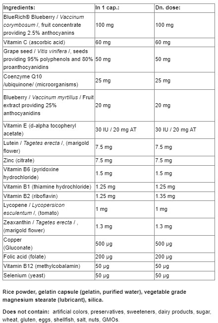 Укрепва капилярите, които захранват различни части на окото