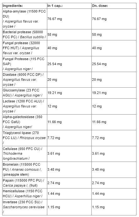 MacroGest Plant Enzyme Formula съдържа комбинация от растителни ензими с висока активност. Формулата е специално разработена, за да подпомогне разграждането на трудносмилаеми храни, включително някои зеленчуци, бобови растения, зърнени храни, ферментиращи въглехидрати и други, които се срещат в растителните диети.