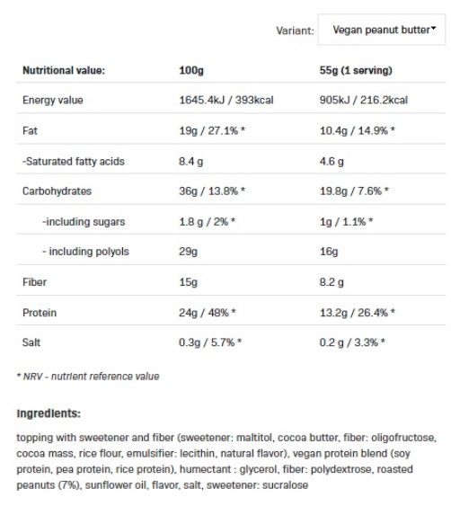 Висококачествен веган протеинов бар с високо протеиново съдържание и диетични фибри, който подхранва мускулатурата ви и забързва храносмилането от