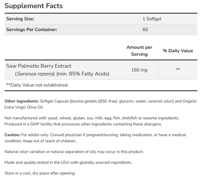 NOW Saw Palmetto Extract 160 mg 120 Softgels