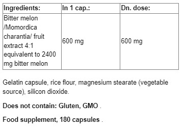 Резултатите от проучвания върху хора и животни показват хипогликемичен ефект на концентрирания екстракт от горчив пъпеш, което означава, че той спомага за понижаване на нивата на глюкоза (захар) в кръвта и регулира използването на инсулин от организма. В много отношения екстрактът от горчив пъпеш действа точно като инсулина, който тялото произвежда естествено.