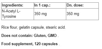Основната активна съставка в N-Acetyl L-Tyrosine от Nutricost е N-Acetyl L-Tyrosine, по-разтворима и бионалична форма на L-тирозина. Тази аминокиселина е от решаващо значение за производството на няколко важни невротрансмитери като допамин, епинефрин и норепинефрин, които играят важна роля в когнитивните процеси.