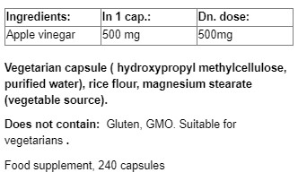 Apple Cider Vinegar от Nutricost е висококачествена добавка, предлагаща ползите за здравето на ябълковия оцет в удобна форма на капсула. Тази добавка е идеална за тези, които искат да включат предимствата на ябълковия оцет в диетата си без силния вкус. Apple Cider Vinegar от Nutricost е предназначен да поддържа здравето на храносмилането, управлението на теглото и цялостното здраве.