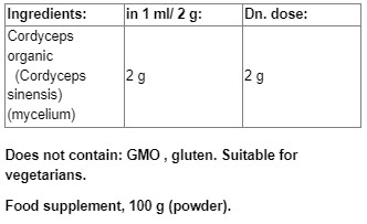 Съставки: Органичен кордицепс (Cordyceps Sinensis) (мицел)