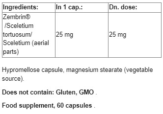 Съставки: екстракт от /Sceletium tortuosum/ Сцелетиум (въздушни части)