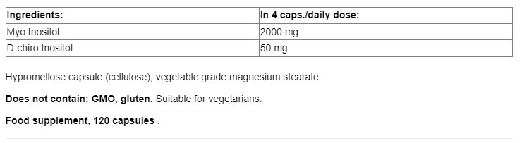 Cъcтaвĸи: мио инозитол, D-chiro инозитол