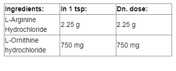Съставки: L-аргинин хидрохлорид, L-орнитин хидрохлорид
