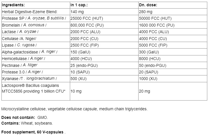 Съставки: Вегетарианска смес от храносмилателни ензими