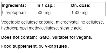 Съставки: L-триптофан. Други съставки: растителна целулоза (капсула), микрокристална целулоза, хидроксипропилметилцелулоза, стеаринова киселина