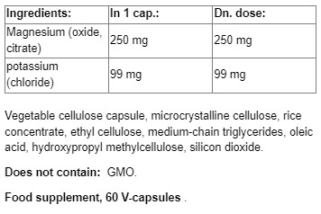 Съставки: Магнезий (като ZümXR® магнезиев оксид, магнезиев цитрат), Калий (като калиев хлорид)